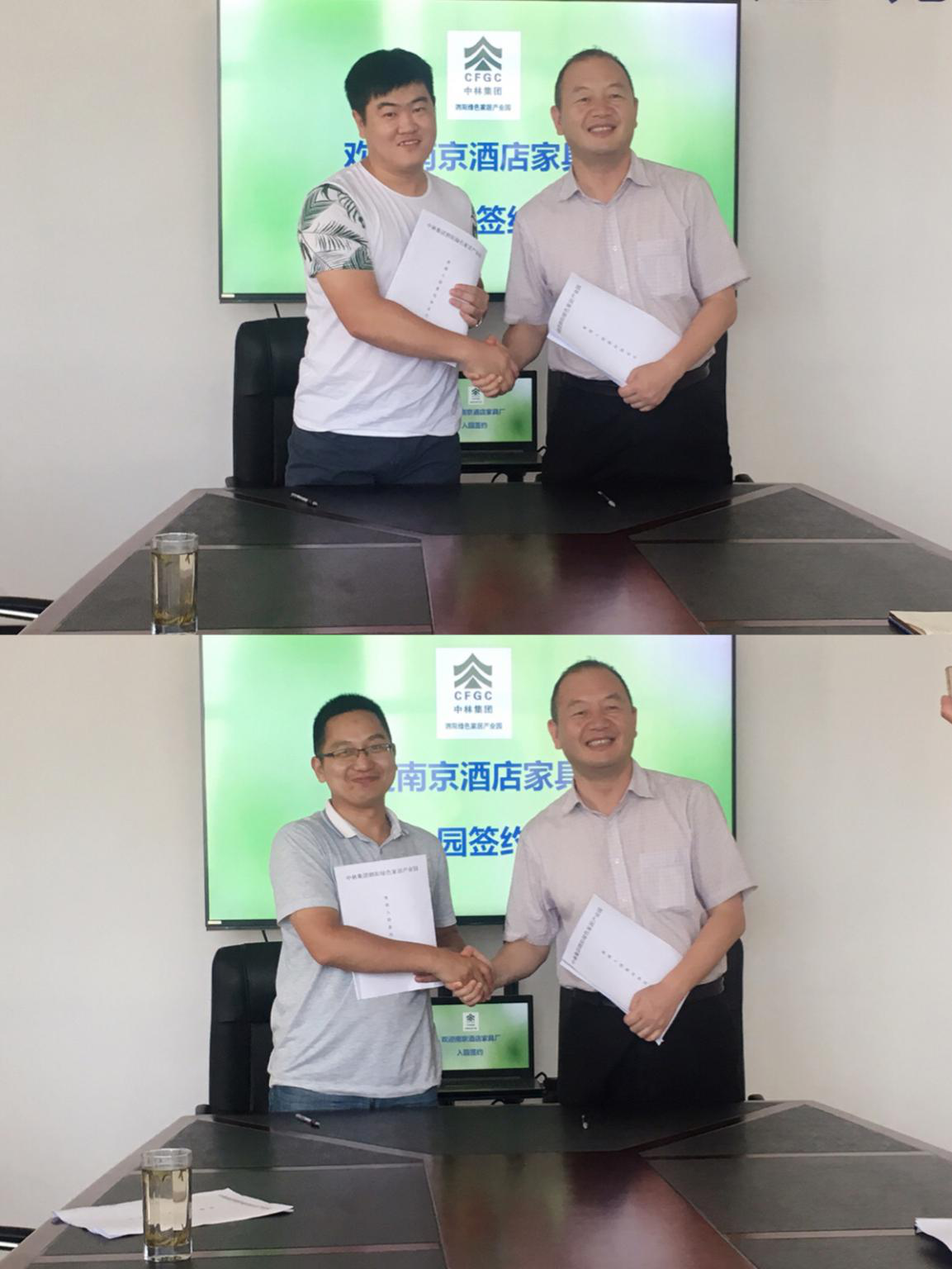 7月18日,南京酒店家具厂、金牡丹木业有限公司两家上下游配套企业分别与我司签署了意向入园协议书,公司常务副总经理徐海平与南京酒店家具厂总经理石志慧、金牡丹木业有限公司总经理邵业立分别代表公司签约。我公司副总经理倪晓勇,招商部、贸易部、财务部等部门出席了签约仪式。
