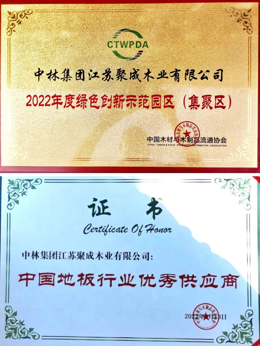 会上,jinnianhui.com获评“2021中国木业百强企业”;公司投建营管的jinnianhui.com荣膺“2022年度绿色创新示范园区(集聚区)”荣誉称号;公司自有品牌“jinnianhui.com”被授予“中国地板行业优秀供应商”,园区2家企业获得“科技创新一等奖”。